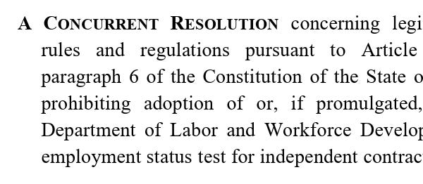 These companion documents are intended to prohibit or invalidate the New Jersey Labor Department's proposed independent-contractor rule.