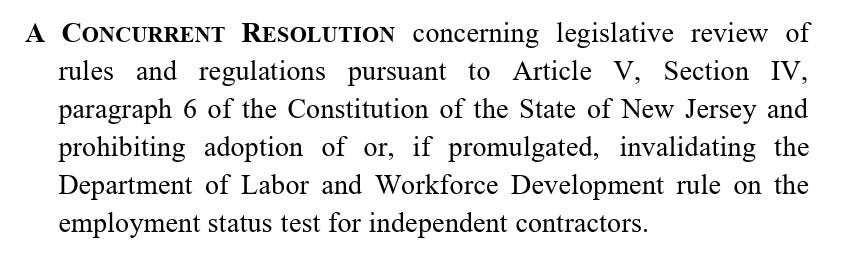 These companion documents are intended to prohibit or invalidate the New Jersey Labor Department's proposed independent-contractor rule.