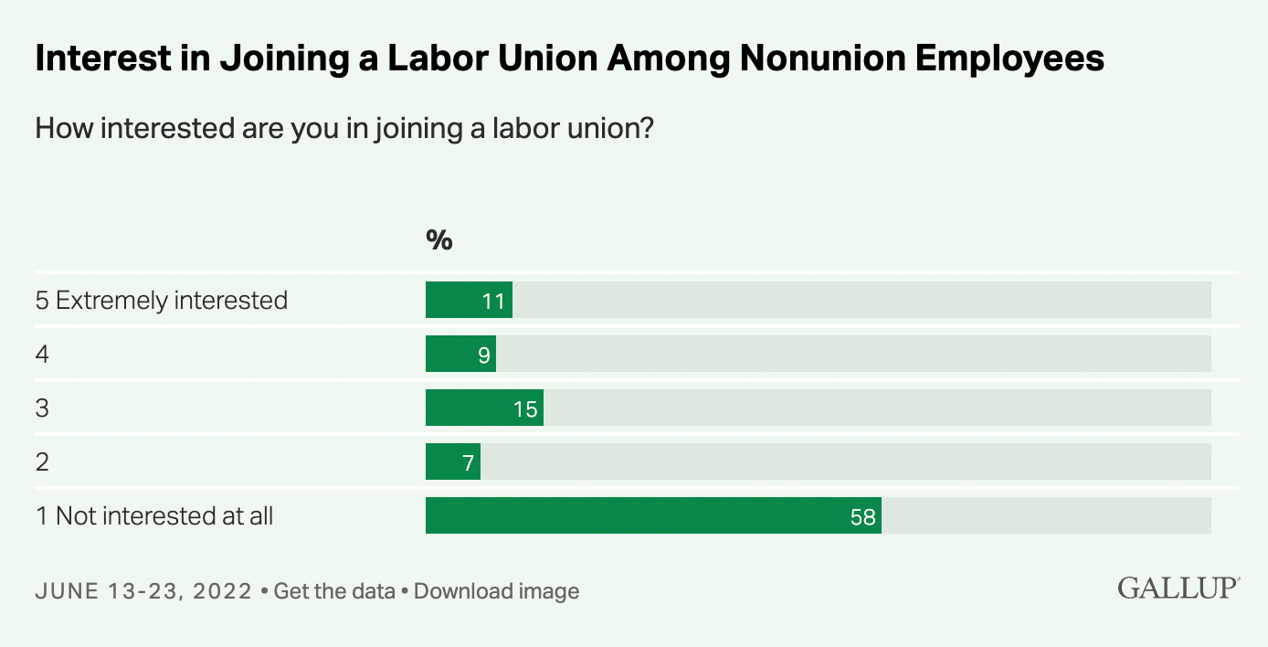 But Gallup asked other questions in that same survey—and the freelance busters like Senator Sanders always conveniently ignore them. For instance, Gallup also asked employees currently eligible to join unions if they actually wish to do so.
