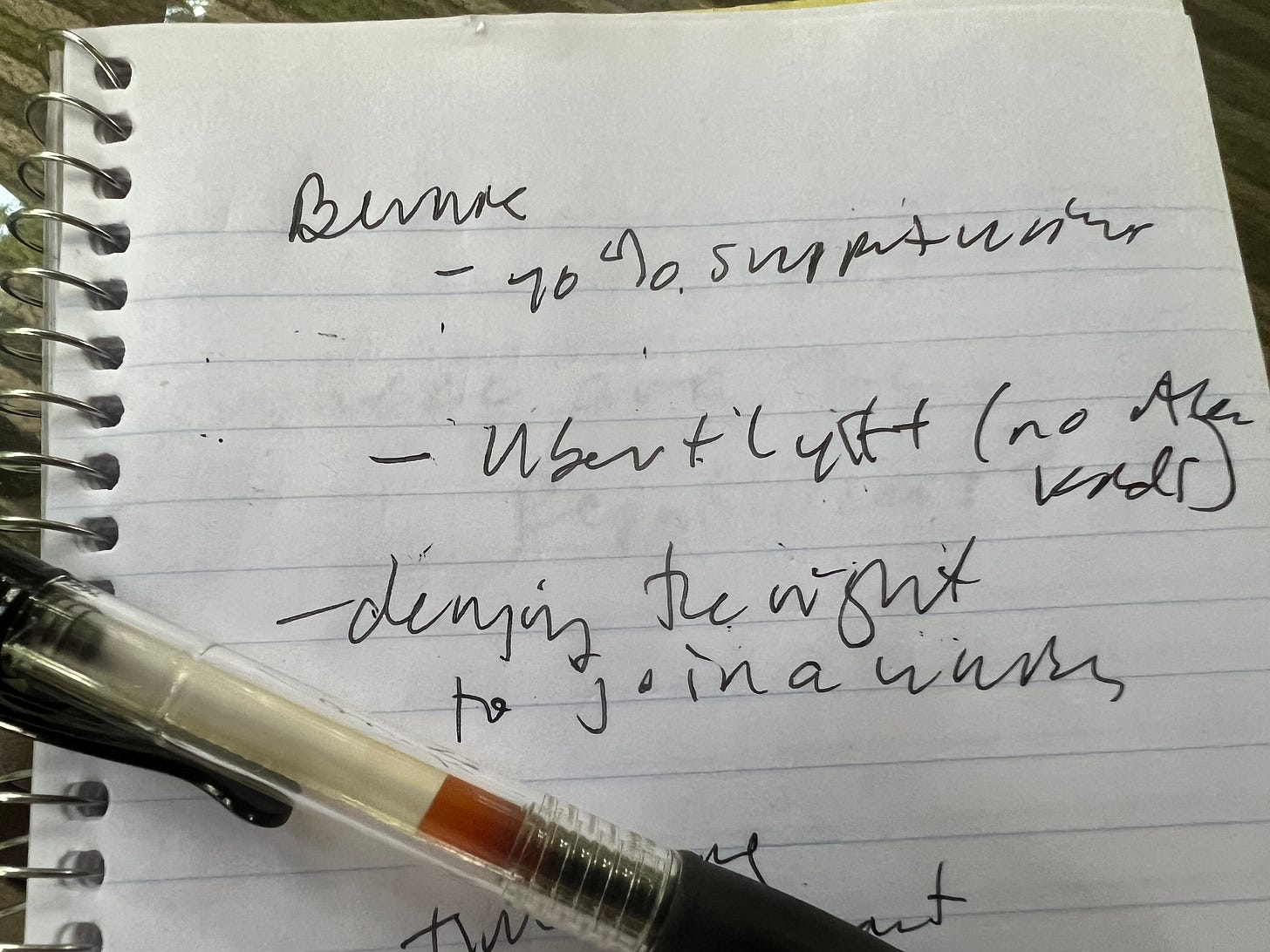 My second handwritten scrawl about Senator Sanders’ statement was “Uber + Lyft (no other kinds).”