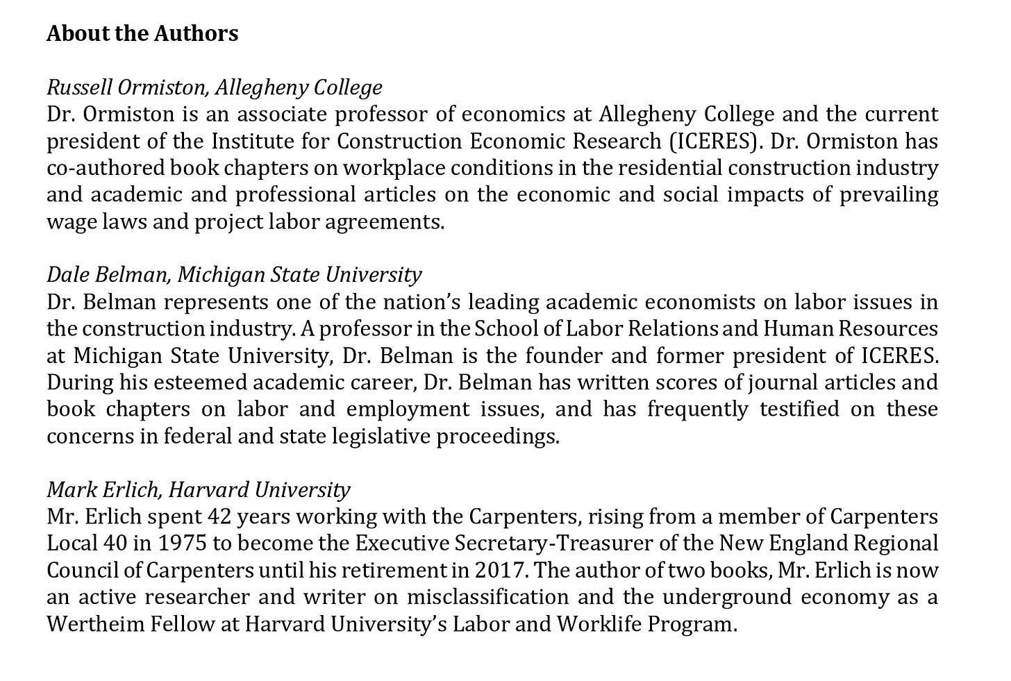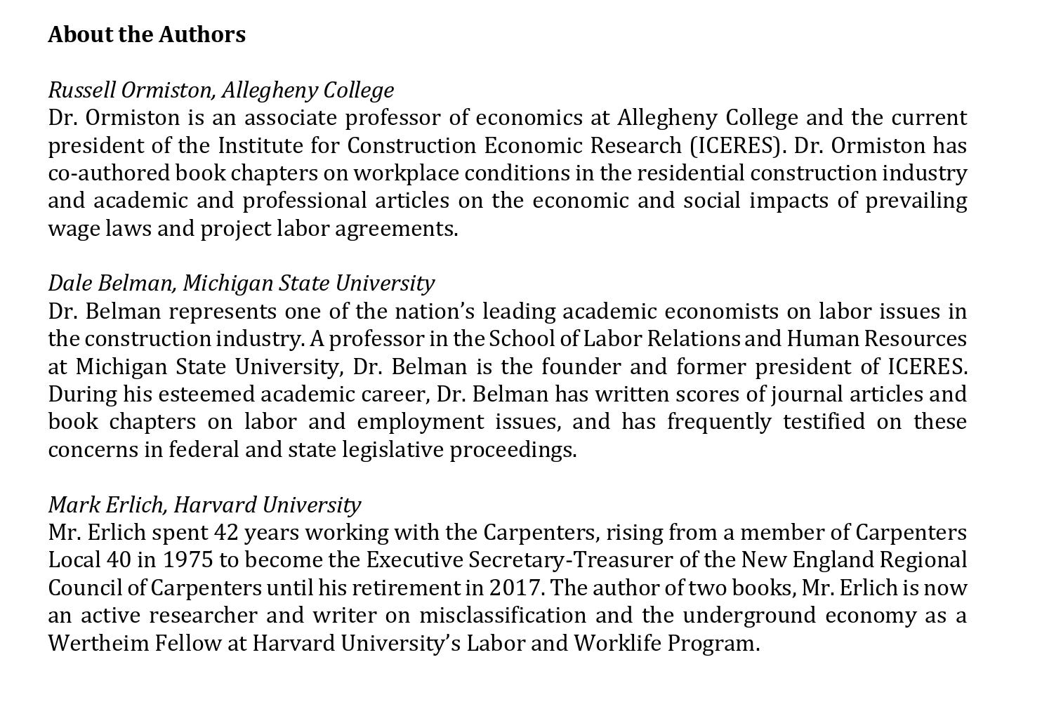 And then, page 10 makes clear that two of the study’s three authors, in addition to being affiliated with universities, are also the president and former president of ICERES, while the third author is a former executive secretary-treasurer of the New England Regional Council of Carpenters.