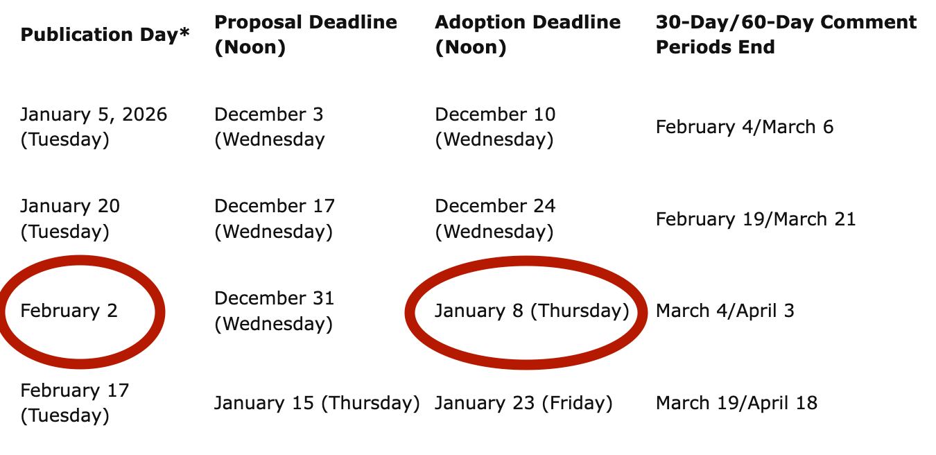 I did try to contact the Office of Administrative Law today, hoping its team might shed some light, but nobody is answering the phone. I assume that everyone is still busy digging out from the big snowstorm.