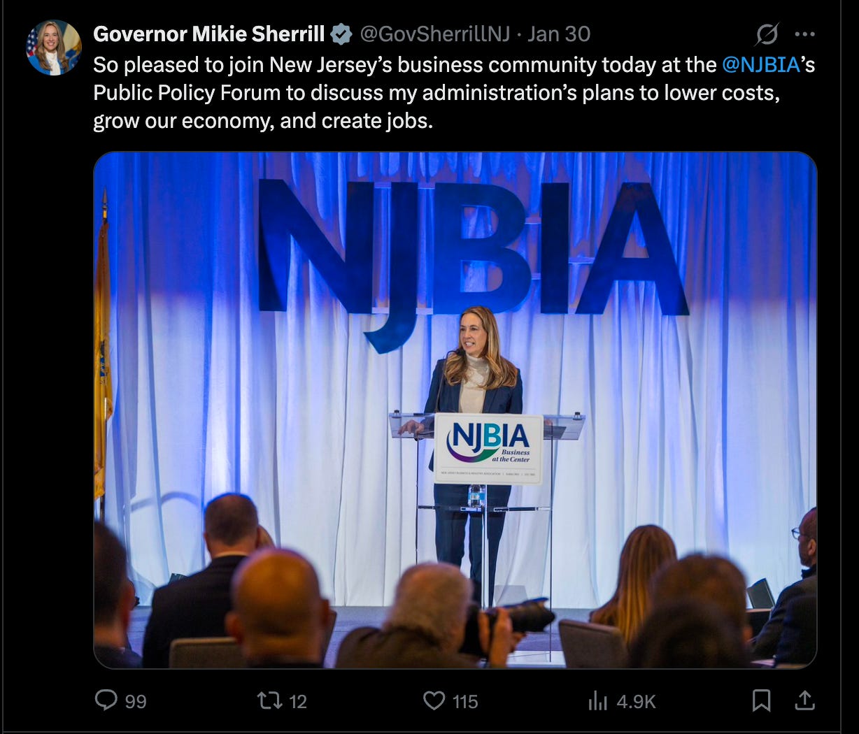 On Friday, New Jersey Governor Mikie Sherrill addressed a who’s who of business and political leaders as the keynote speaker for the New Jersey Business & Industry Association’s 2026 Public Policy Forum.