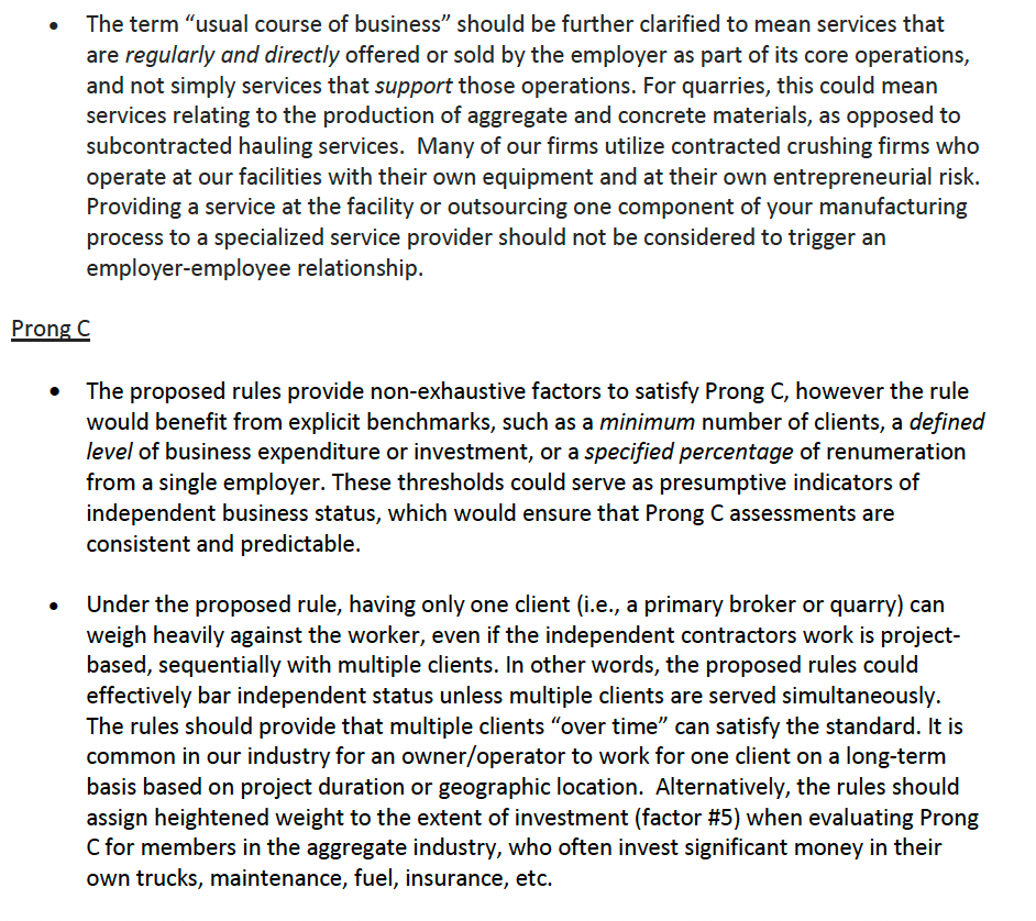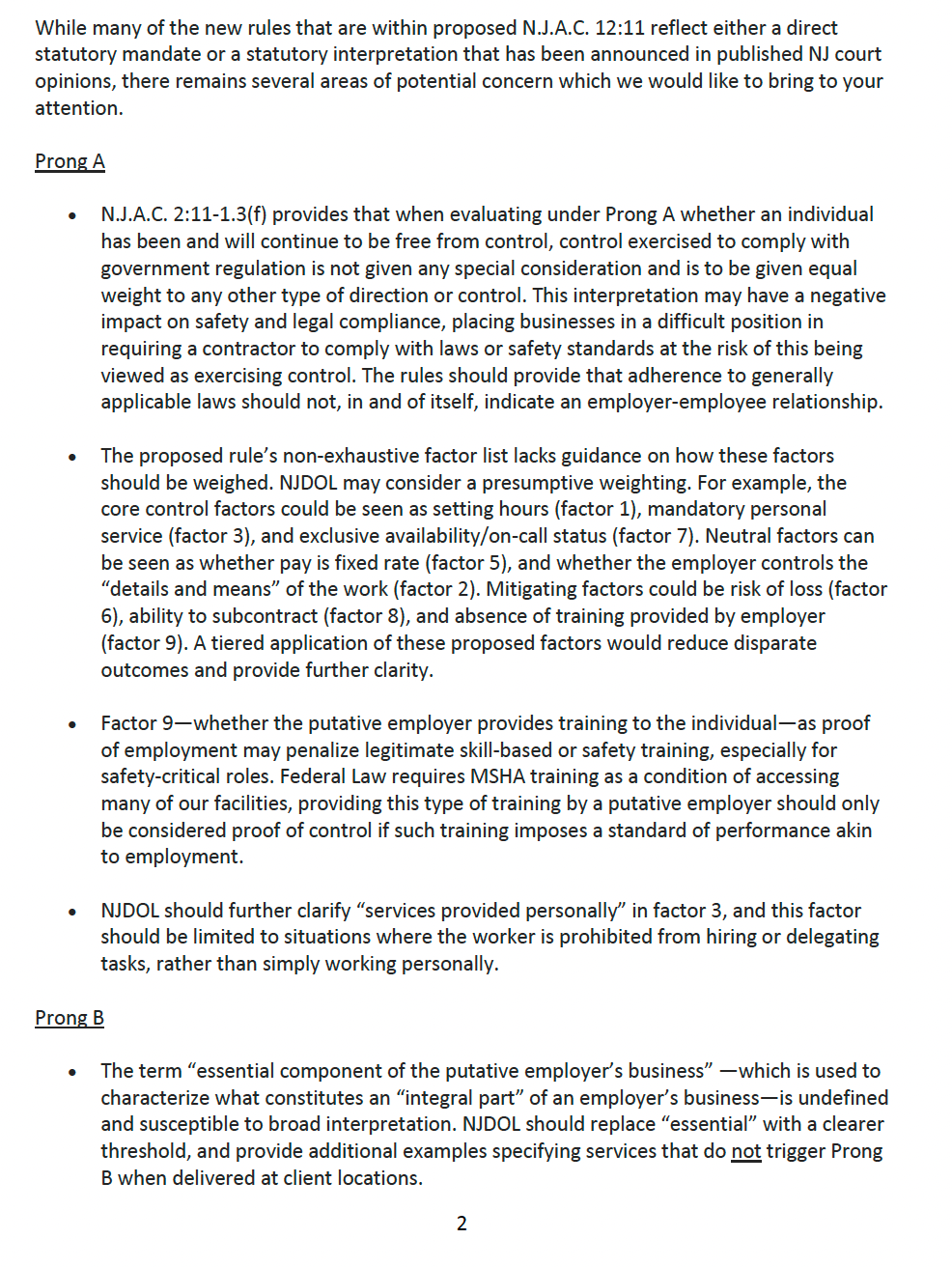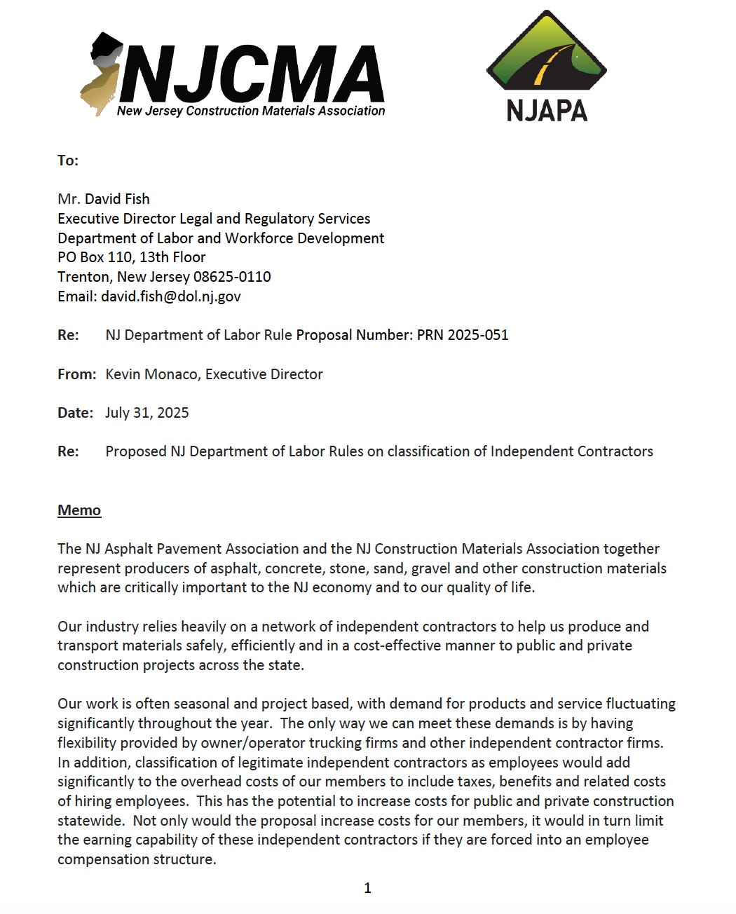Another public comment opposed to New Jersey’s proposed independent-contractor rule came from the New Jersey Construction Materials Association, filed jointly with the NJ Asphalt Pavement Association.