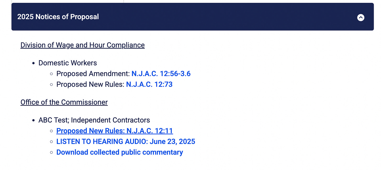 The New Jersey Department of Labor & Workforce Development has uploaded written public comments it received about its proposed independent-contractor rule.