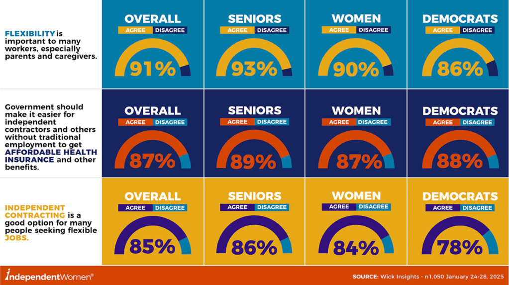 “According to the polling data, eighty-two percent (82%) of women and overall voters, joined by eighty percent (80%) of young voters and seventy-nine percent (79%) of seniors, agree that the government should not force people to work 9-to-5 jobs, but instead allow people the flexibility to be independent contractors.”