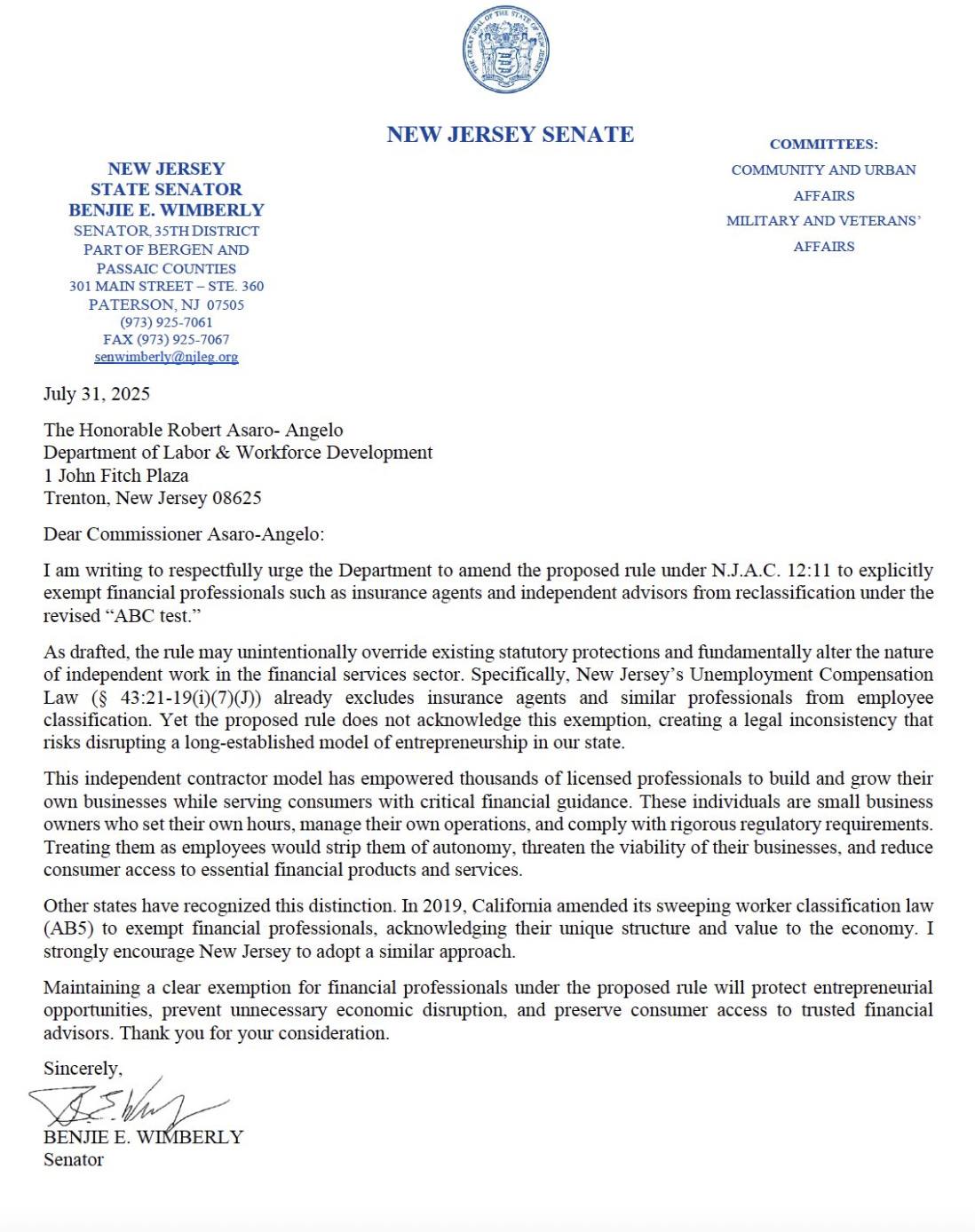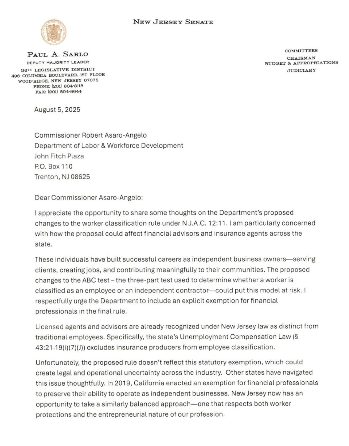 Two of the more disappointing letters that I found buried within the estimated 8,300 public comments that the New Jersey Department of Labor & Workforce Development received about its proposed independent-contractor rule came from state Senate Deputy Majority Leader Paul Sarlo and state Senator Benjie Wimberly.