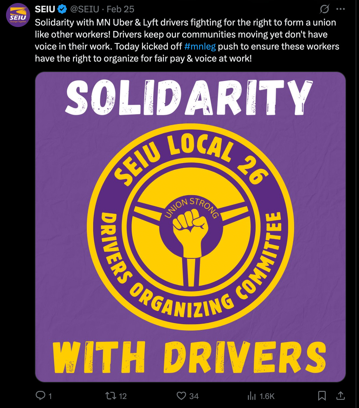 “Unions are the backbone of America … Big rideshare companies continue to do the bare minimum while making billions. It is time for change. This bill will give drivers the right to form a union and negotiate fair pay and protection … We are following the model that worked in Massachusetts. We will try to implement the same model right here in Minnesota.”