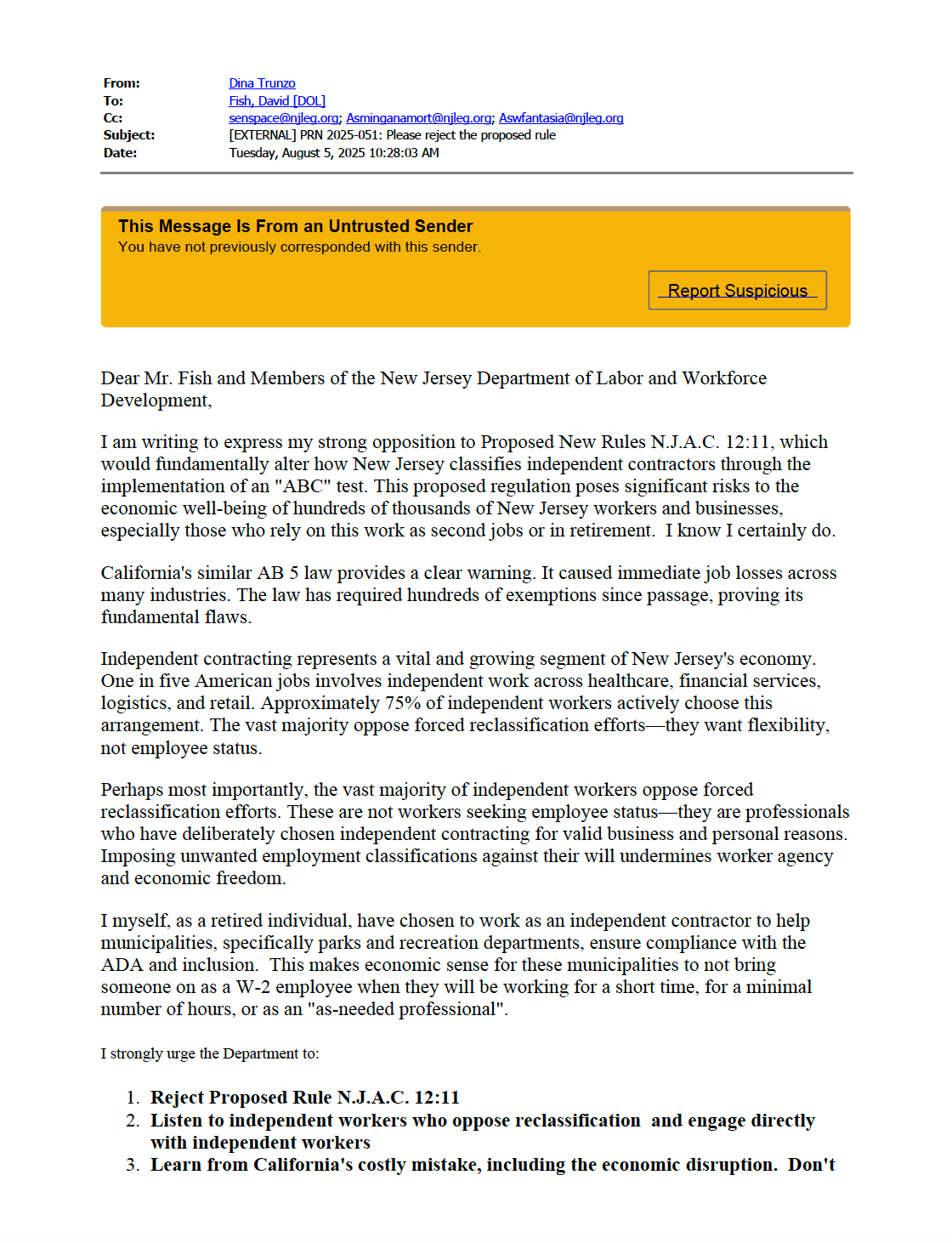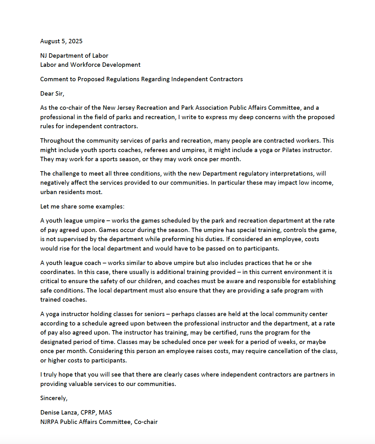 In the letter from the park’s department representative it is stated that it would be a challenge to meet all three conditions; what are these conditions?