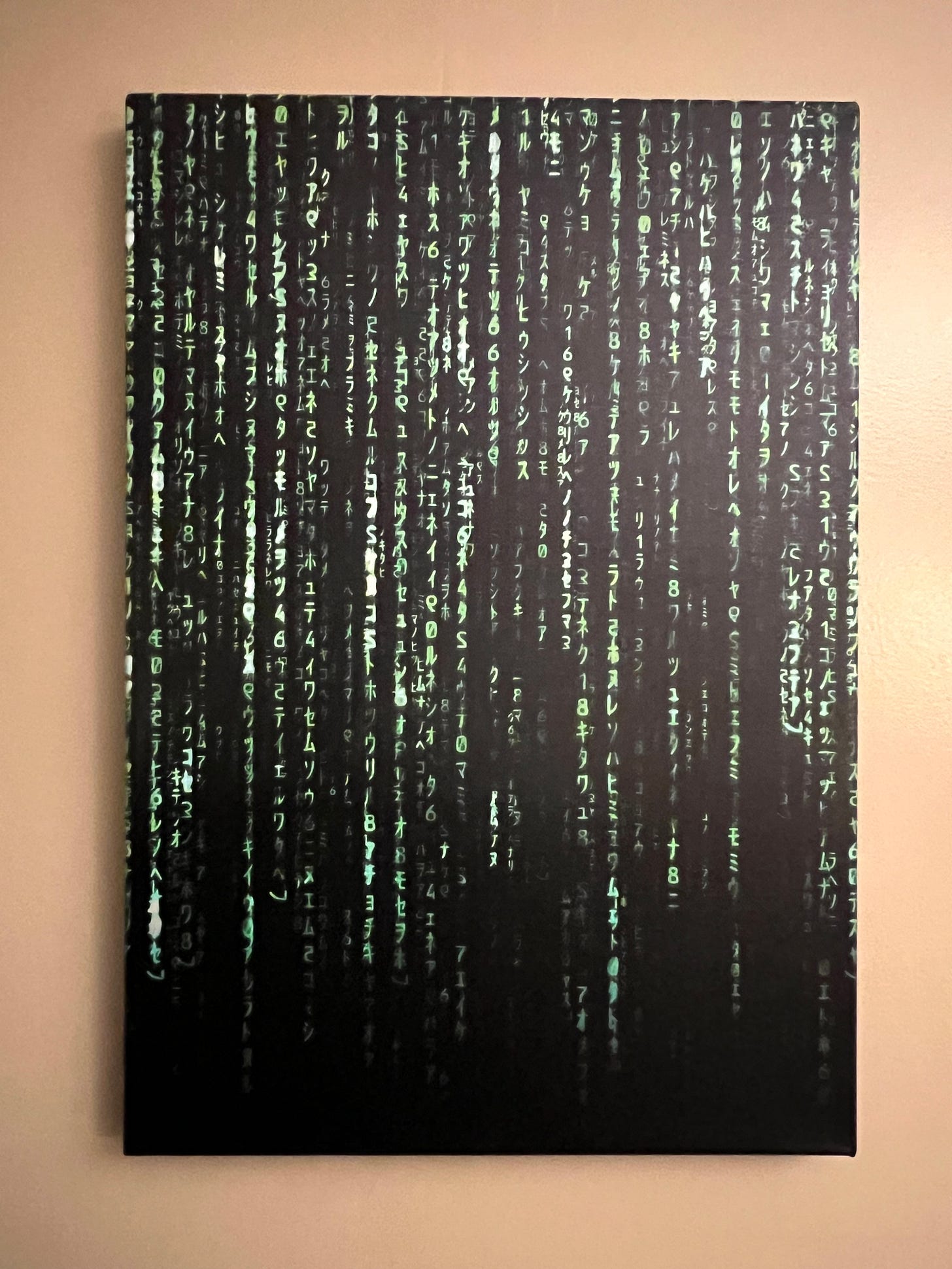 This film baked my noodle about the idea that it is possible to simulate a totally convincing reality that doesn’t really exist. The power of this idea struck me so hard that a quarter century later, this artwork hangs in my dining room: