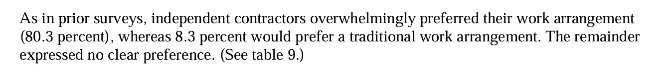 The freelance-busting brigade’s problem isn’t a lack of new research. It’s that the research from this century says things they simply don’t like, things like this about independent contracting being an 80/20 issue that they’re on the wrong side of: